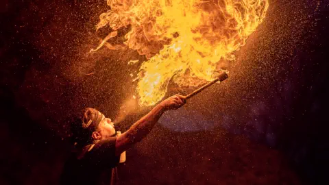 Erleben Sie die Magie des Feuers! In unseren Feuershows erwarten euch spektakuläre Feuerbälle, mitreißender Feuertanz, Feuerschlucken, Körperfeuer, rotierende Feuerstöcke und überraschende Feuereffekte. Tauchen Sie ein in eine Welt voller faszinierender Muster, Spiralen und Bilder aus Feuer. Unsere Choreographien verbinden präzise abgestimmte Musik, Feuerartistik, modernen Tanz und akrobatische Elemente zu einer ästhetischen und emotionalen Kunstform. Die Dynamik der Musik wird im Tanz mit dem Feuer zum Leben erweckt und in einzigartigen Feuerbildern sichtbar gemacht. Taucht ein in eine Welt voller Leidenschaft und Feuer – nur bei DrachenHerz!